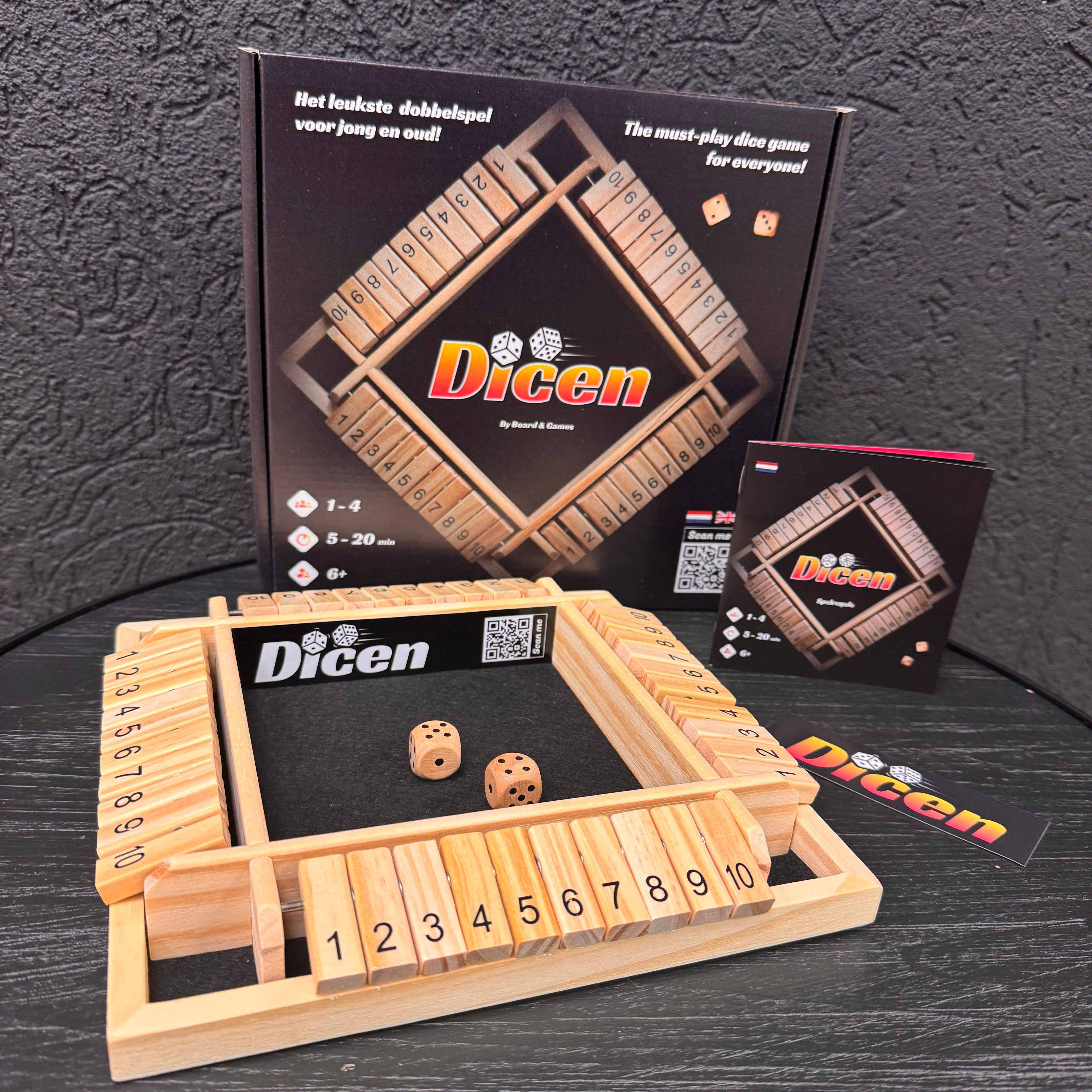 Het spel combineert geluk en strategie in een perfecte mix: je dobbelt, maakt slimme keuzes en probeert zo lang mogelijk in het spel te blijven. Door de verschillende spelregels toe te passen kun je DICEN op meerdere manieren spelen: van een snelle pot van 5 minuten tot een tactische battle met vrienden.